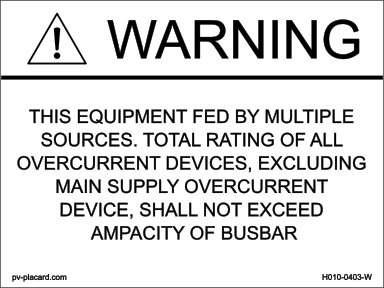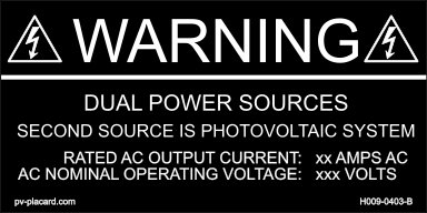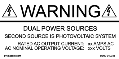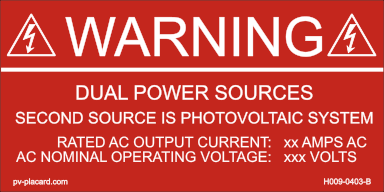 PV Placard hazard placards are available in multiple layouts, in many sizes, and in four colors to accommodate any application space or legal requirement.